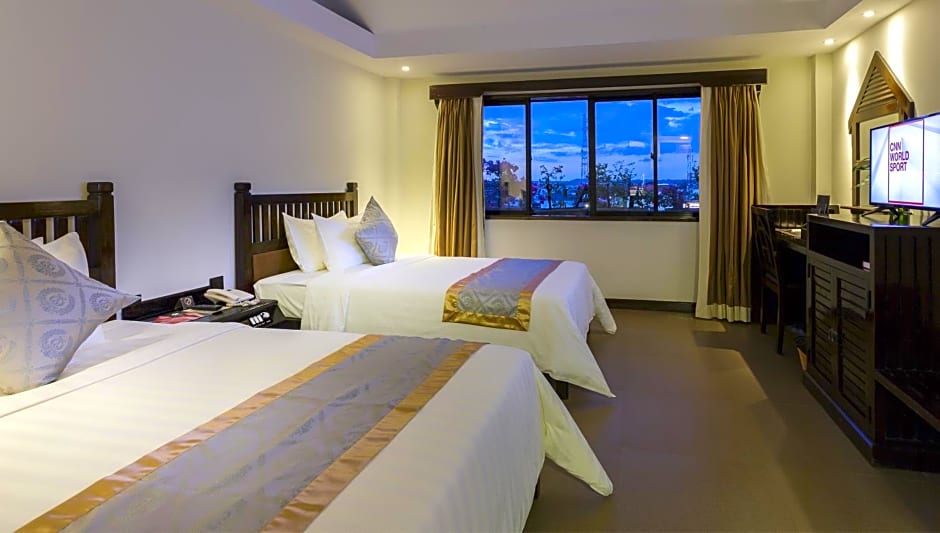Room for 3 guests offers views of the city. Tea/coffee making facilities are available.